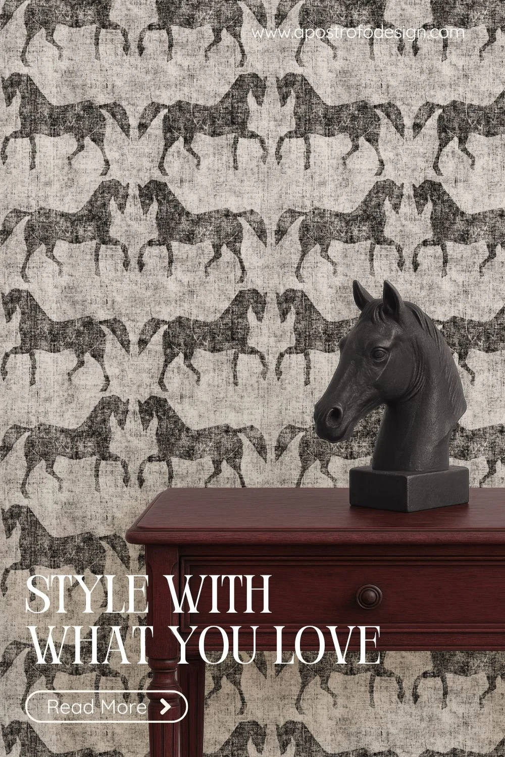 Textured horse wallpaper in a traditional interior