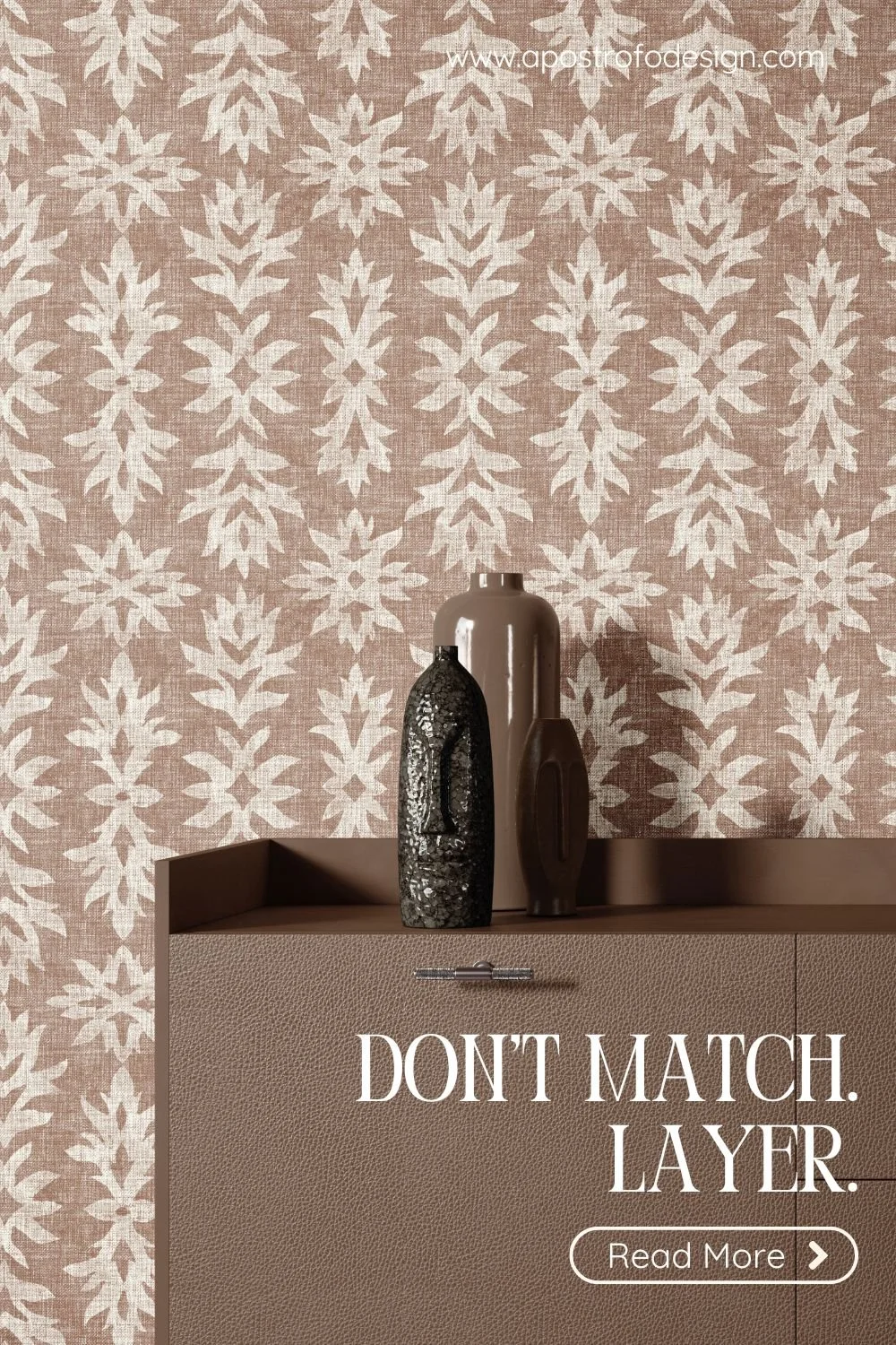 Sleek modern sideboard and textured wallpaper