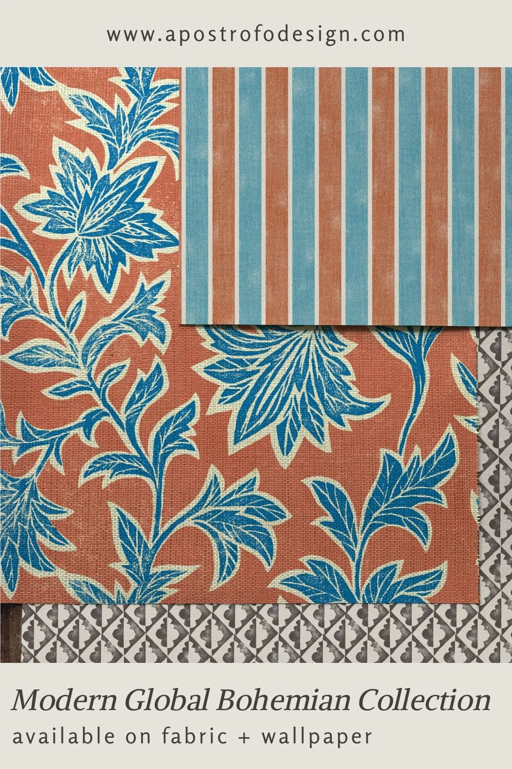 The Modern Global Bohemian collection offers a curated selection of wallpapers and upholstery fabrics that blend artisanal craft with contemporary flair. Featuring block printed florals, woven motifs and sun‑washed, muted palettes, the collection layers rich texture and global patterns to create warm, personal interiors. Perfect for mixing eras and styles, Modern Global Bohemian celebrates slow craftsmanship, individuality and relaxed, heritage-rich charm.