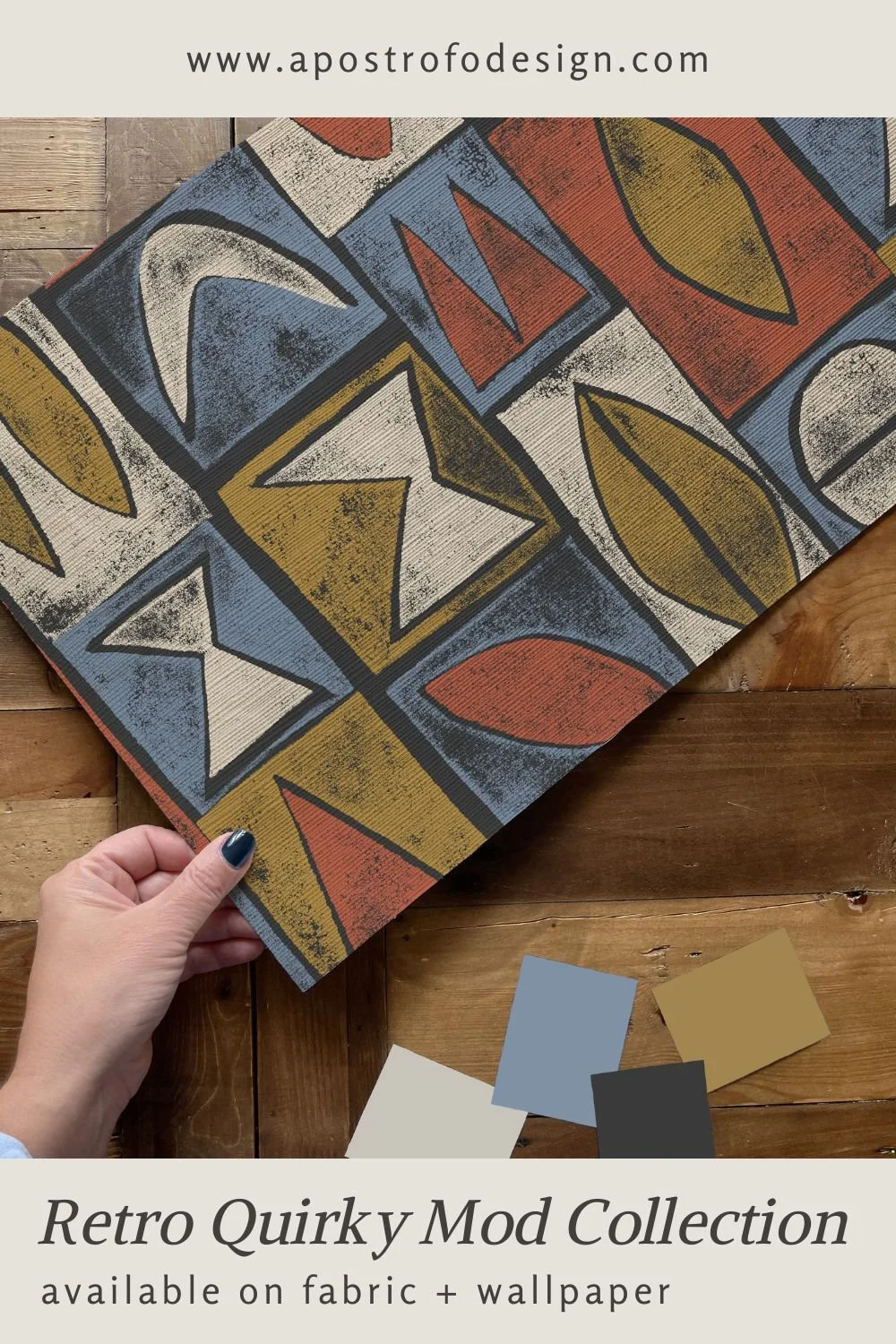 This print features vibrant, retro-inspired geometric patterns with a quirky, layered texture that evokes the charm of vintage block printing techniques. Its design seamlessly blends mid-century style with a handcrafted, artisanal feel, making it perfect for adding an eclectic touch to modern interiors. Ideal for DIY projects, interior designers, and brands seeking versatile patterns for fabrics, wallpaper, and home décor that celebrate both vintage and contemporary aesthetics.